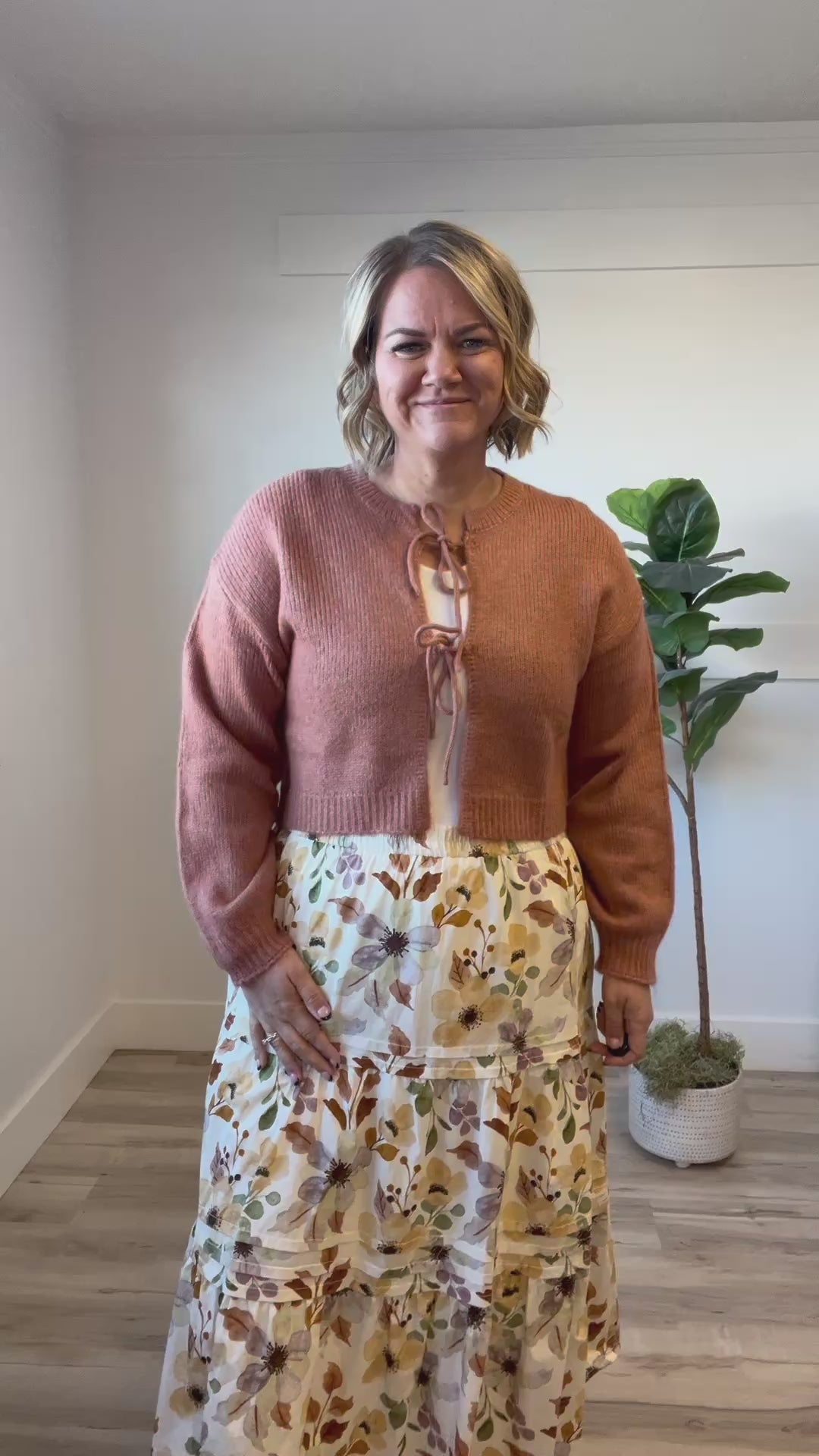 The Araceli Sweater is a cozy long-sleeve cardigan designed with a trendy cropped fit and a tie-front detail. Perfect for layering, it offers both comfort and style, making it an ideal choice for cooler days while adding a flattering touch to your outfit. This sweater supports your need for versatility and effortless fashion. Available in black, oatmeal beige or light rust.