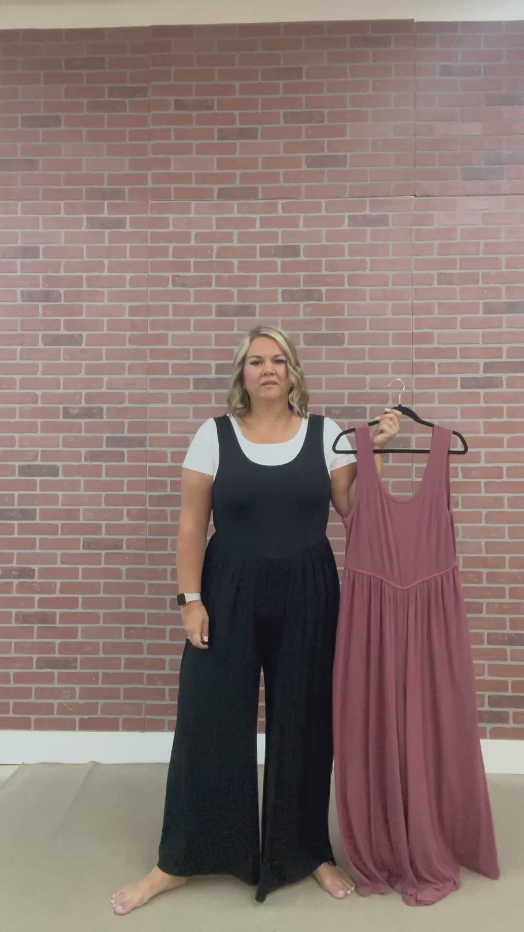 Elevate your style with the Brianna Jumper! Designed with a wide strap and ribbed fabric, it features a basque (dramatic v shape) waist and gathered waistline for a flattering fit. The princess seams on the bodice and scoop neckline add a touch of elegance. Available in black or mauve.