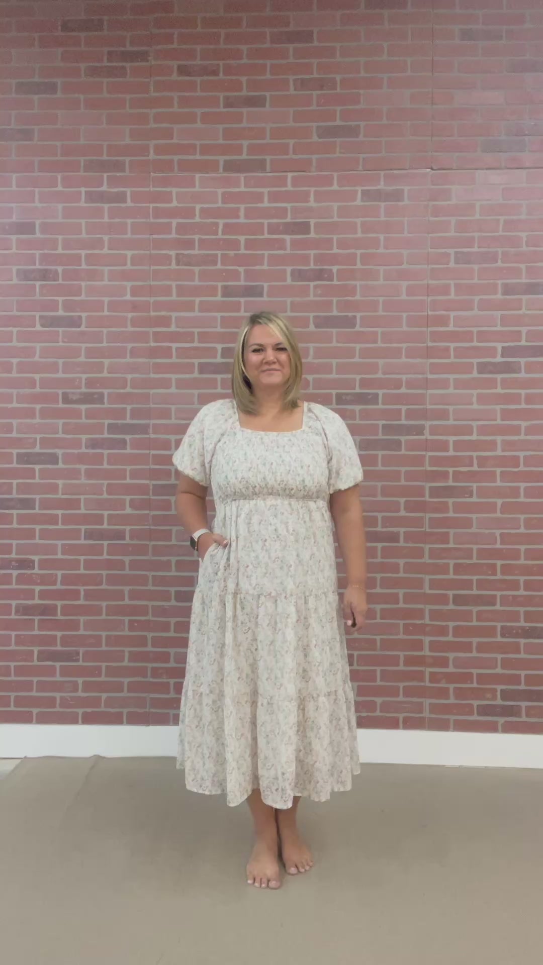 Introducing Indy Maxi: the perfect blend of femininity and comfort. This cream-colored dress features a beautiful watercolor print of pink and green florals. The smocked bodice offers a flattering fit while the elastic cuffs ensure all-day wearability. The tiered design adds a touch of whimsy to this lined dress.