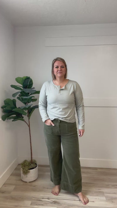 These moss green corduroy pants are giving major vintage vibes! The cropped length pairs perfectly with the wide-leg silhouette for that effortlessly cool look. High-rise waistband keeps everything in place while the wide hem adds a polished finish. Functional patch pockets mean you've actually got somewhere to stash your essentials. Soft, textured corduroy fabric makes these a cozy favorite you'll reach for again and again.