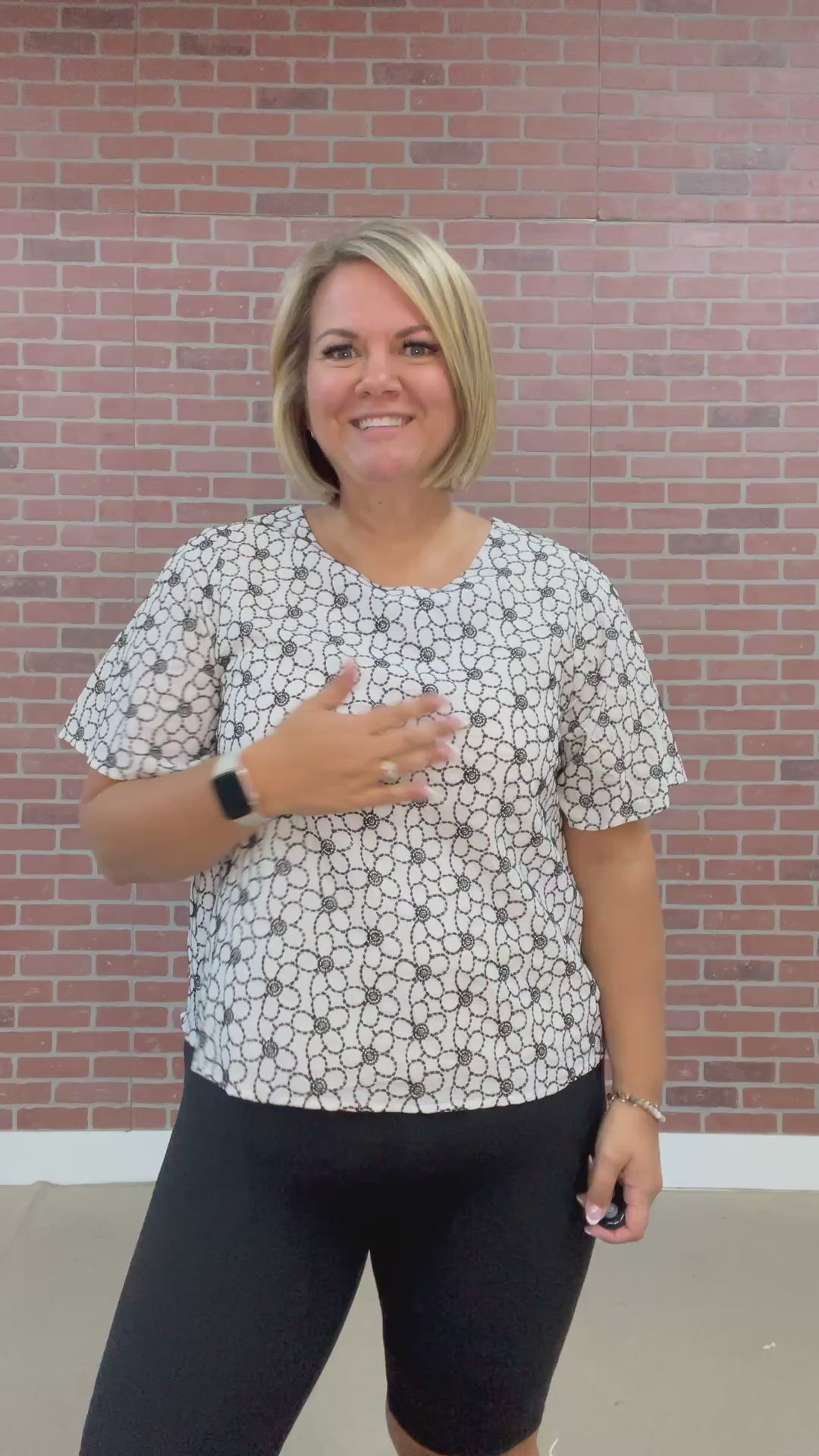 22The Calliope Top brings a fresh twist to your wardrobe with its crisp white fabric and charming black embroidered floral outlines. Featuring a playful round neck and short sleeves, it’s fully lined for comfort and a flawless fit. Perfect for adding a touch of whimsy to any outfit!