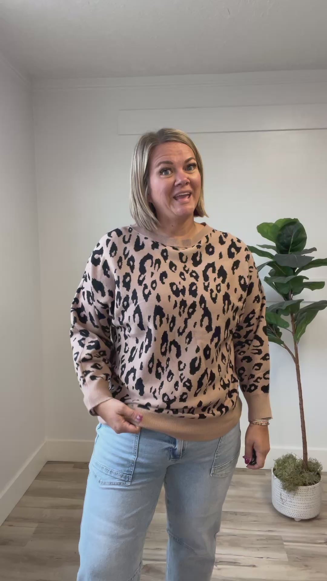Stay cozy and chic in the Candi Top, a playful oversized sweater featuring a bold large leopard print in warm tan tones. Its relaxed fit makes it perfect for lounging or adding a fun edge to your everyday outfit. Embrace comfort without sacrificing style with this standout piece that’s sure to turn heads wherever you go.