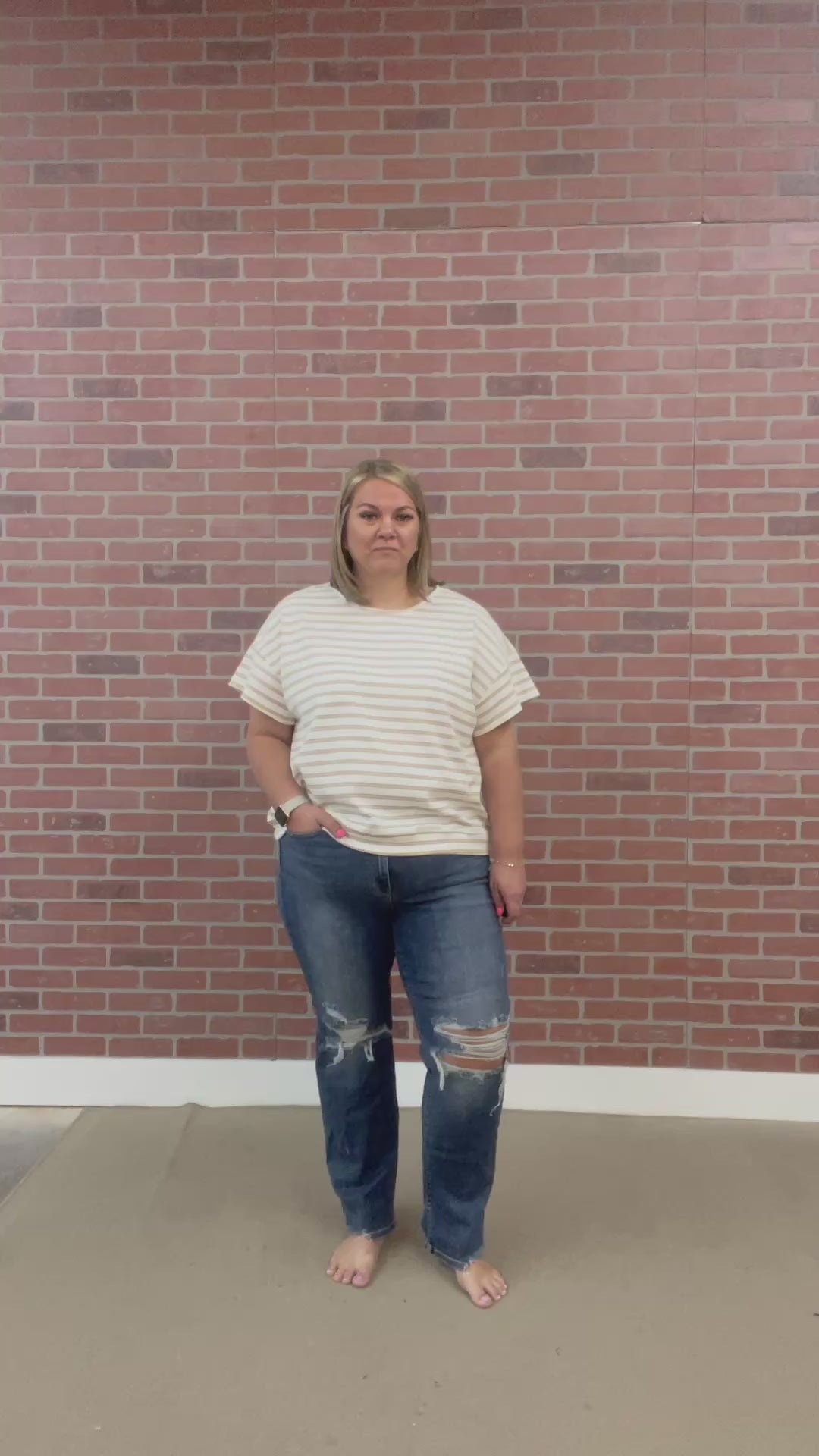 The brand of these jeans is Judy Blue. We recommend you size down. See chart for measurements. Model is wearing a 7 and is 5'3". Plus model is wearing a 14W and is 5'7".
