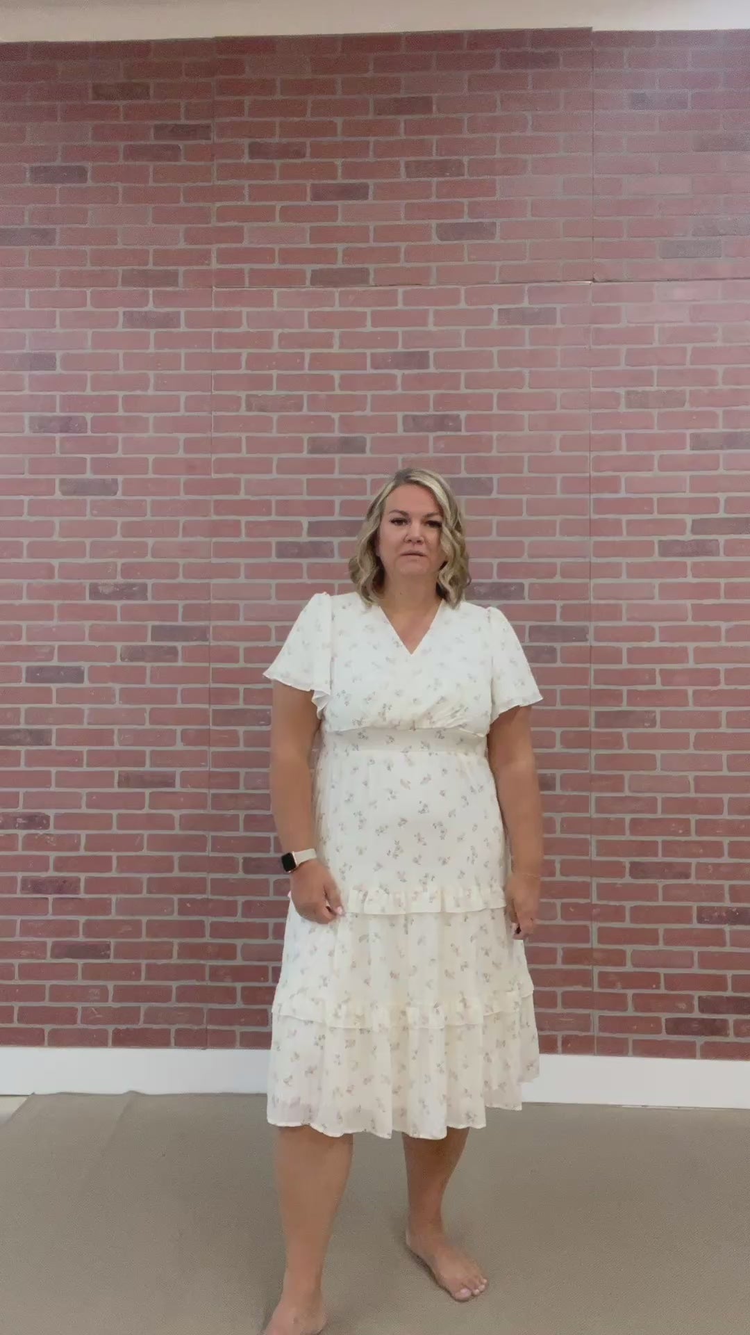 Be the epitome of effortless elegance in our Adaline Midi. With its delicate pink floral print and faux wrap design, this dress is perfect for any occasion. The textured fabric adds a touch of sophistication, while the short flutter sleeves, tiers and ruffles add a playful touch. Fully lined with pockets, you can be stylish and practical at the same time. What more could you ask for? (Answer: Nothing!)