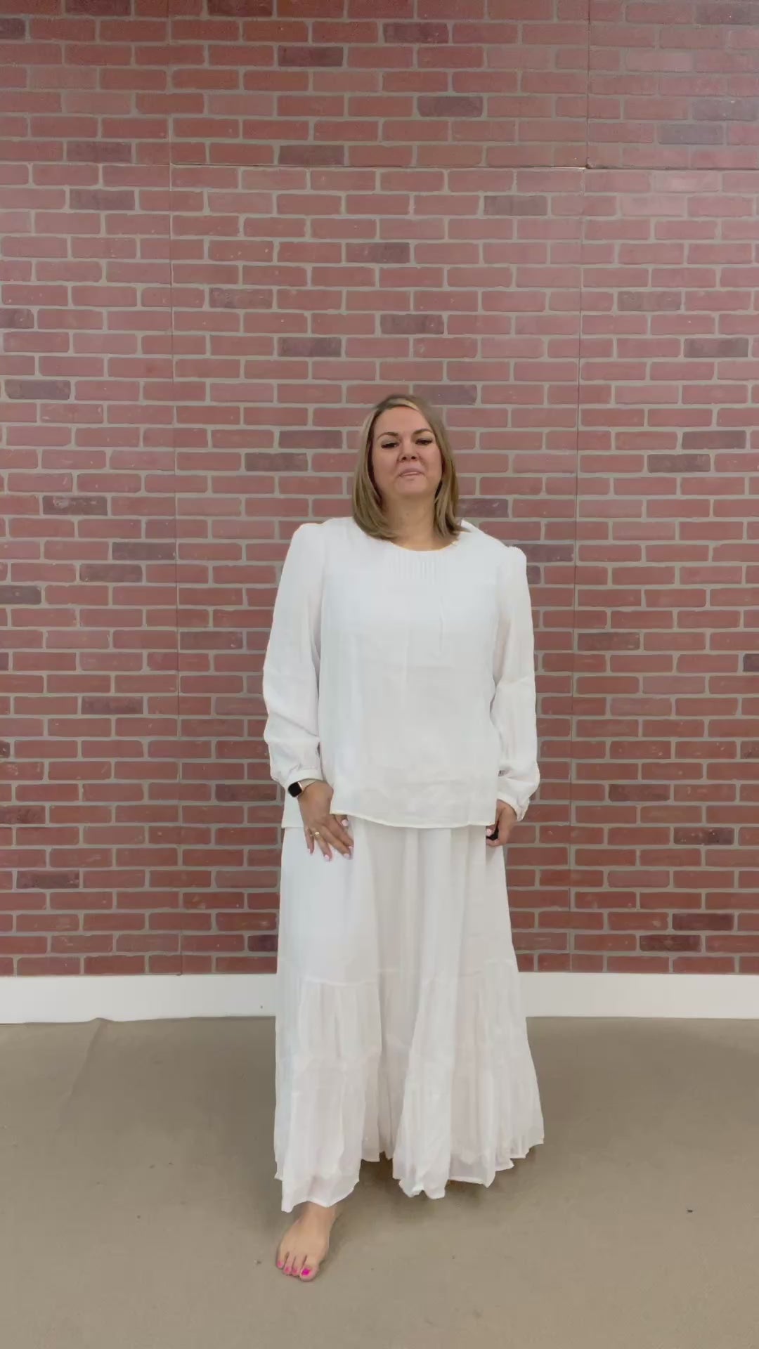 Be the epitome of elegance and femininity in our All In White Skirt Set. Crafted from a gauze-like fabric, this set boasts delicate embroidery on the skirt tiers, shirt hem, and yoke. With long puff sleeves, round neck, and key hole close, it exudes charm while offering comfort with an elastic waist and fully lined design. The pintuck detail adds a touch of sophistication, while the seam pockets provide practicality. Perfect for your special occasion, this set will leave you feeling comfortable, confident and chic.