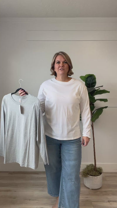 This long sleeve Avalon Tee is the perfect addition to any wardrobe. The soft Organic Cotton fabric and classic crewneck design make it a comfortable and versatile basic tee. Stay stylish and cozy in any season with the Avalon Tee. Comes in white or heathered gray.