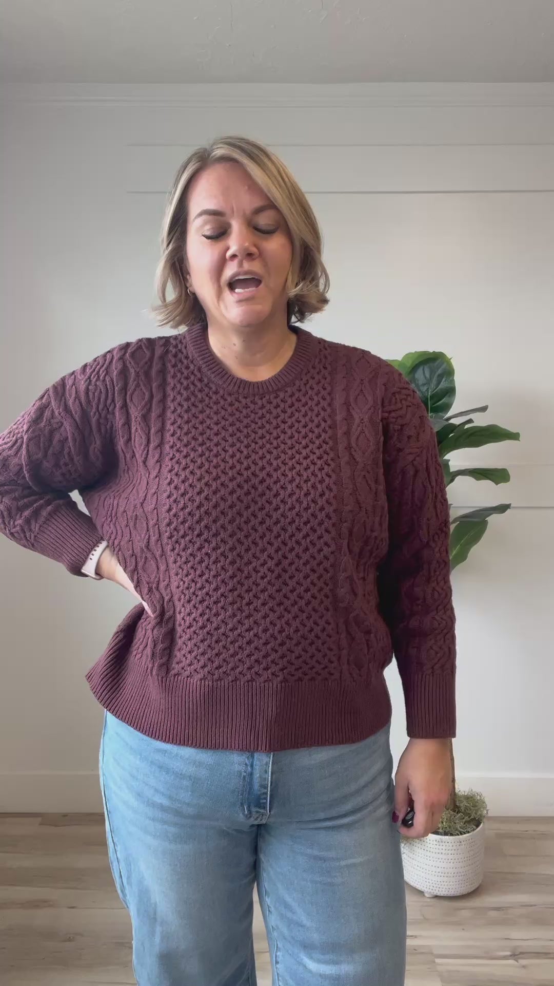 The Bailynn Sweater is perfect for cooler weather. With long sleeves and a cozy crew neck, it will keep you warm and stylish. The varied knit patterns add a unique touch to this classic brown sweater. Stay comfortable and on-trend with the Bailynn Sweater.