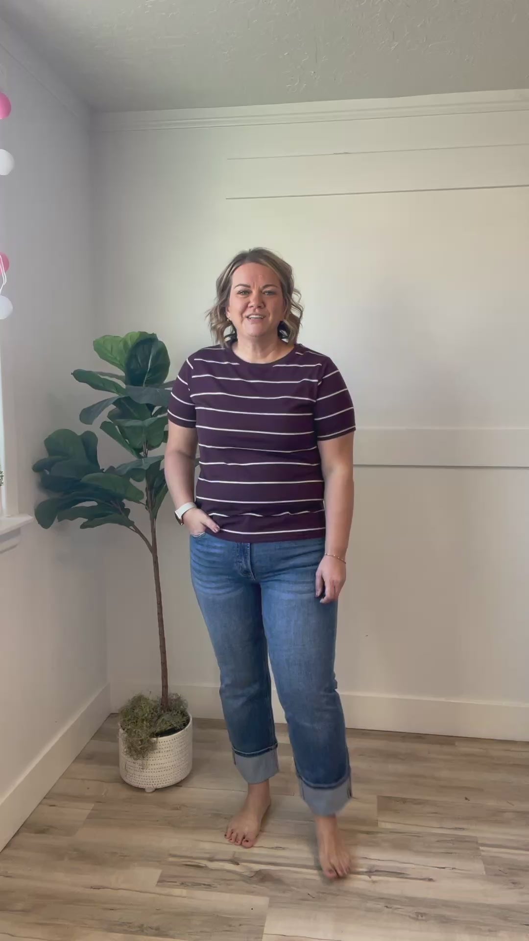These straight-leg jeans bring effortless style to your everyday rotation. Crafted with a flattering high-rise fit and finished in a versatile medium wash, they're the perfect canvas for any outfit. The single cuff at the ankle adds a touch of casual charm, while the streamlined silhouette keeps things timeless. Whether you're heading to the beach or running errands around town, these jeans deliver comfort and confidence in one go. Slight fading and whiskers, no holes or distressing.
