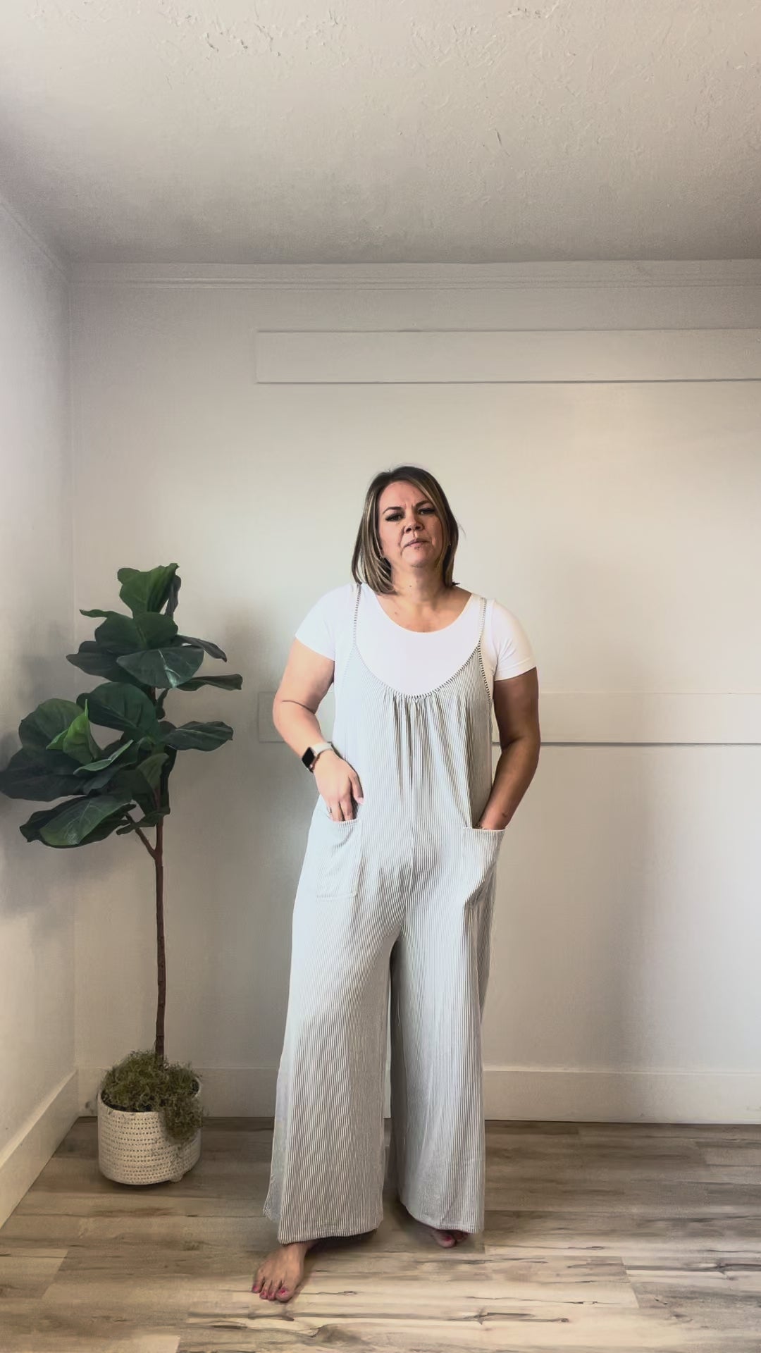 The Betty Jumper brings effortless charm with its playful ivory and black stripes paired with a textured finish that adds visual interest. Designed for comfort and style, this piece features practical front patch pockets, delicate spaghetti straps, and a gathered front detail under the scoop neckline that flatters your silhouette. The stretchy fabric moves with you throughout your day, making it perfect for casual outings or relaxed weekends. A versatile staple that works solo or layered, the Betty Jumper is your go-to for laid-back sophistication.