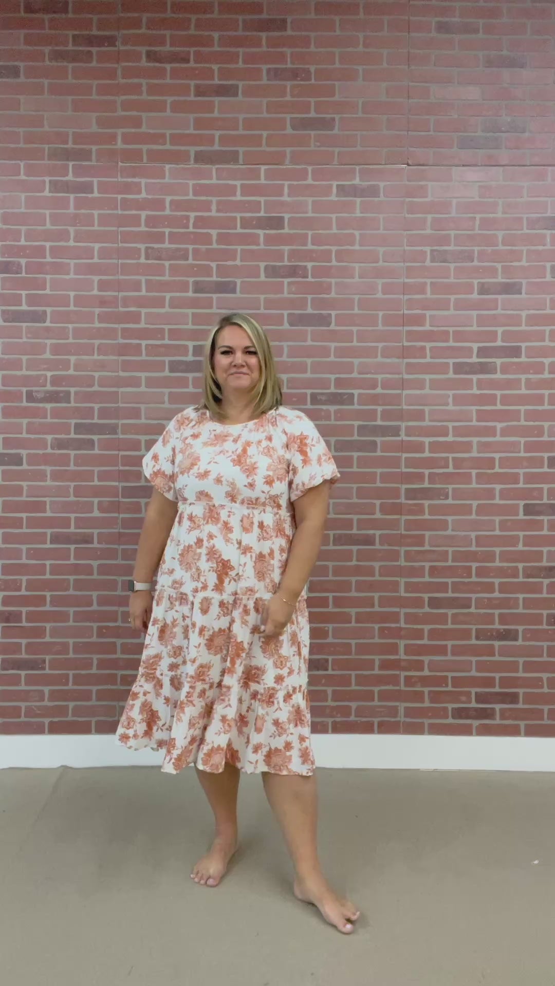 Introducing the Catalina Midi - a must-have for any fashion-forward wardrobe! With its elegant white fabric, charming terracotta florals, and delicate tiers with ruffles, this dress is both stylish and versatile. The short balloon sleeves with elastic add a playful touch, while the fully lined design ensures optimal comfort. Perfect for any occasion, this dress will elevate your look with its timeless round neck and raglan sleeves.