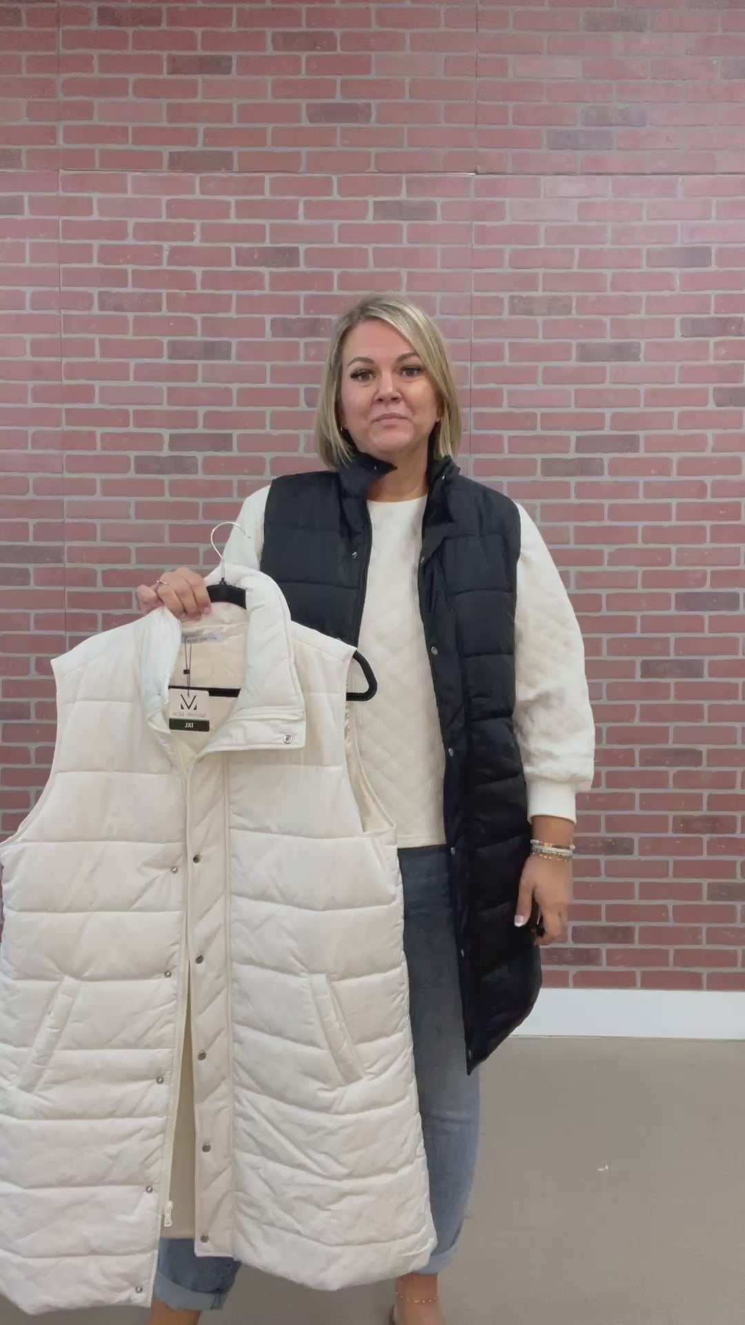Elevate your winter wardrobe with the Emily Vest! The puffy design not only provides warmth and comfort, but also adds a stylish touch to any outfit. The duster length creates a flattering silhouette, while the slant pockets offer convenience and functionality. The zip and snap up closure and black satiny lining add a luxurious finish. Don't let the cold weather stop you from looking your best! Comes in cream or black.