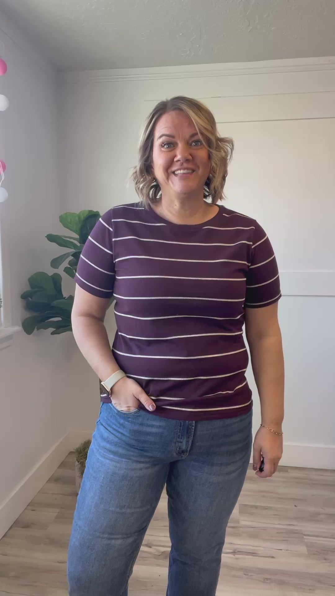 Introducing the Kaitlyn Striped Top—your new go-to for effortless style! This playful piece features a rich dark burgundy base adorned with textured cream stripes that add just the right amount of visual interest. The classic crewneck keep things cozy and comfortable, while the short sleeves make it perfect for layering or wearing solo. Whether you're dressing up or keeping it casual, this striped beauty brings a touch of personality to any outfit.