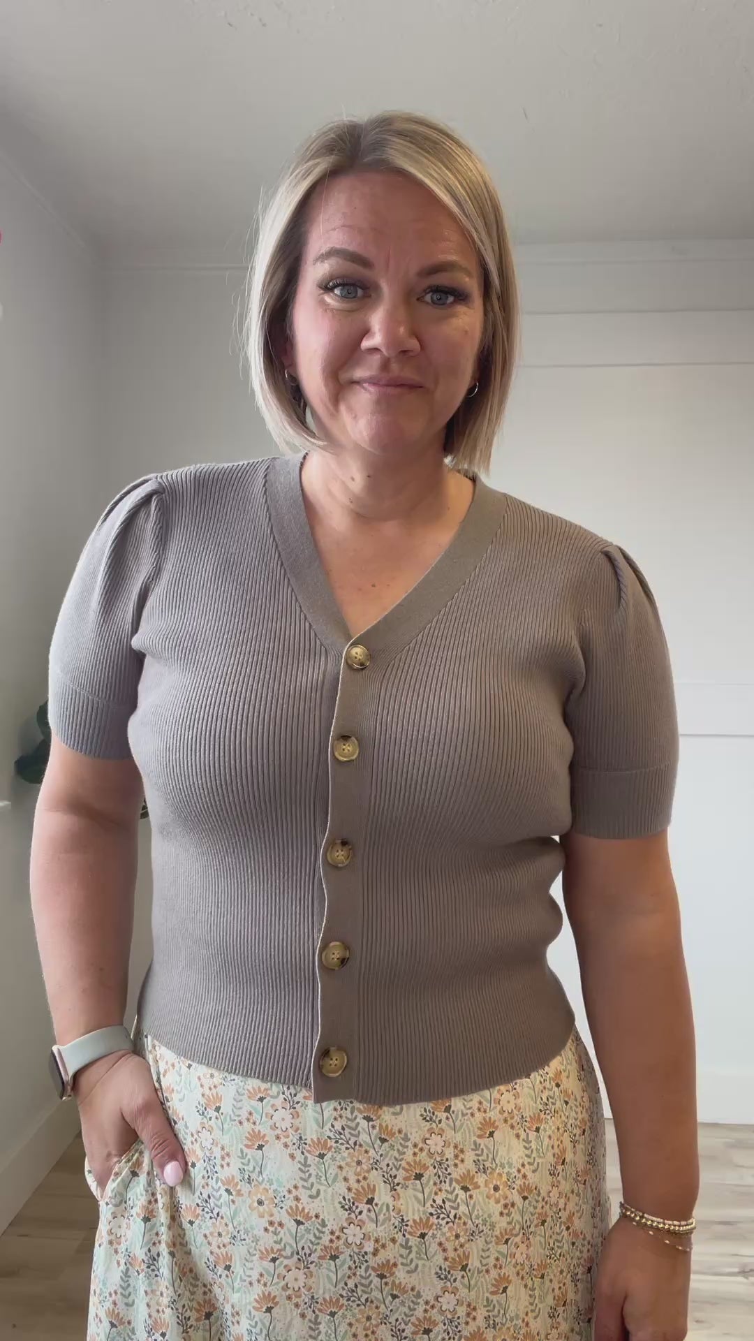 The Kyrie Top brings effortless elegance to your everyday wardrobe. This flattering V-neck sweater features charming short puff sleeves and a classic button-up front in a deep moss green that complements all skin tones. The short sleeves offer breathable comfort while the structured silhouette skims your frame beautifully. Versatile enough to layer or wear solo, it transitions seamlessly from casual weekends to polished office settings. A timeless piece that deserves a permanent spot in your closet.