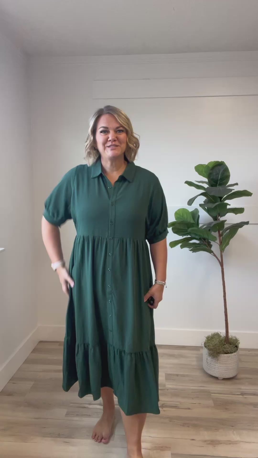 Elevate your style with ease in our Leo Midi, featuring a subtle texture and chic elbow length sleeves. The banded cuffs with button close, shirt collar and button up front add a sophisticated touch, while the ruffle hem brings a touch of femininity. Available in a rich deep green, this versatile staple is sure to be a favorite you'll reach for over and over.