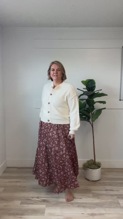 The Mae Maxi Skirt brings effortless charm to your wardrobe with its relaxed elastic waist and flowing tiered silhouette. Adorned with delicate multi-colored small florals scattered across a rich brown base, this skirt captures a whimsical, garden-inspired aesthetic. Perfect for layering or wearing solo, the tiered design adds movement and dimension with every step. Whether you're heading to brunch or a casual weekend adventure, this skirt delivers comfort without compromising on style.