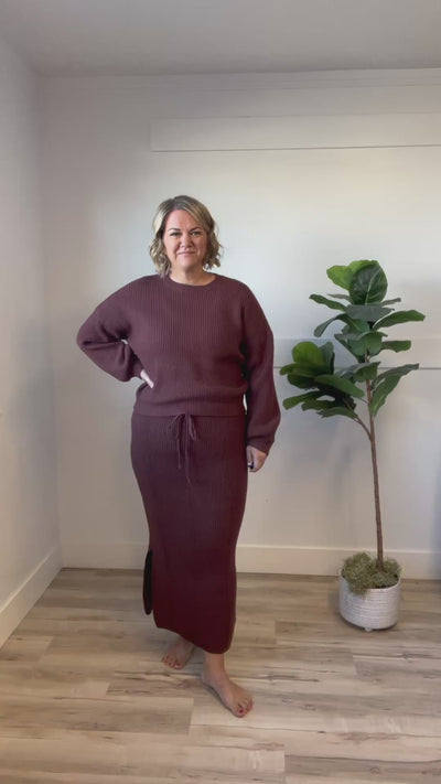 Stay cozy and stylish in the Maple Sweater- a thick, chunky sweater knit in a rich, deep mahogany hue that feels as warm as autumn itself. This long-sleeve top shines with a comfy round neck and dramatic sleeves. This sweater effortlessly blends comfort with chic, making it your go-to for crisp days and cozy nights. Embrace the season with warmth and a splash of color!