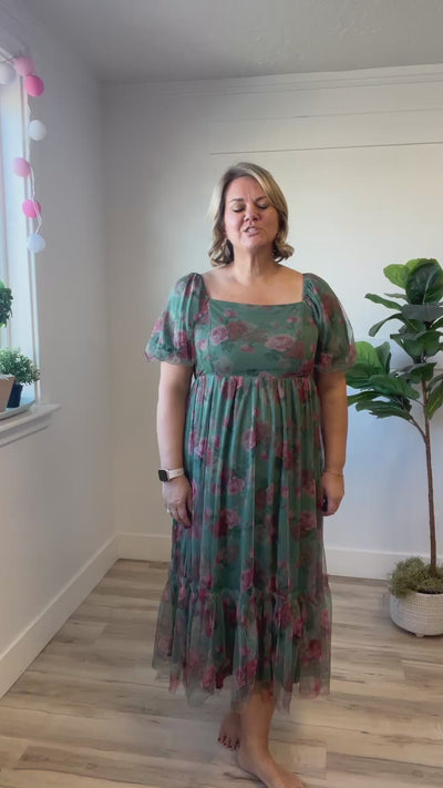 The Marianne Maxi brings together whimsy and sophistication in one stunning piece. This hunter green gown features delicate printed tulle adorned with pink and burgundy florals that dance across the fabric. Short puff sleeves add a charming, feminine touch, while the flowing maxi silhouette creates an effortlessly elegant look. Fully lined for comfort and confidence, this dress is perfect for making a memorable entrance at any special occasion.