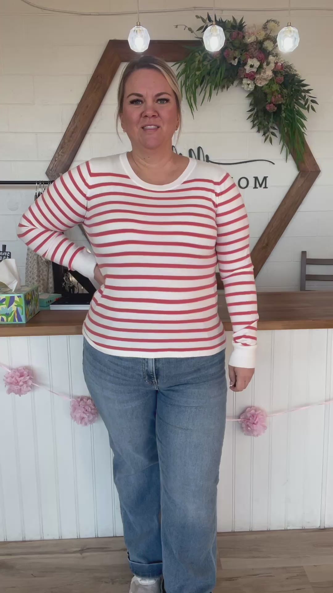 Get ready to embrace some serious nauti-cool vibes with our Marina Sweater! This playful take on a classic white sweater features bold coral stripes for a pop of color. And with long sleeves, a straight hem, and ribbed bands at the neck and cuffs, you'll stay stylish and snug all day long.