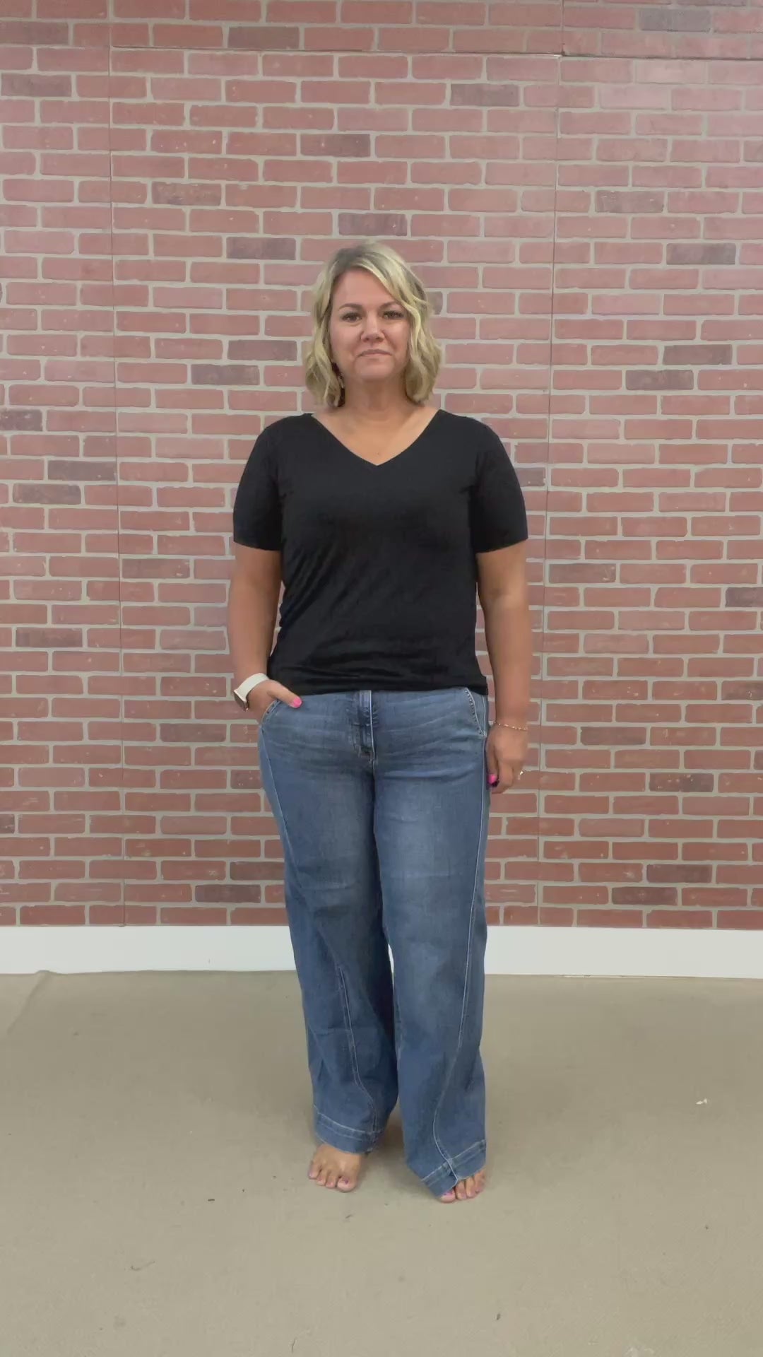 Elevate your wardrobe with the Ocean Grove trouser jeans, designed for a flattering fit and effortless style. Featuring a high waist and back shaping darts, these medium wash wide-leg jeans offer comfort and a sleek silhouette. Diagonal seam pockets and front seam detailing add a modern touch, making them perfect for both work and weekend wear. Experience the blend of tailored sophistication and relaxed ease with Ocean Grove.