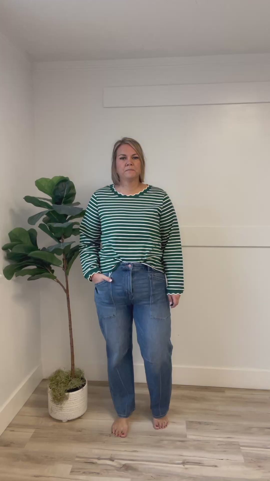 These Panama Beach Jeans combine comfort and style with a flattering mid-rise fit and versatile barrel leg silhouette. Crafted from dark wash denim with 4-way stretch, they move with you for all-day ease. Thoughtful details like patch pockets add a subtle touch of charm, making these jeans perfect for casual days or dressed-up looks. Elevate your wardrobe with jeans designed to keep you comfortable and confident.