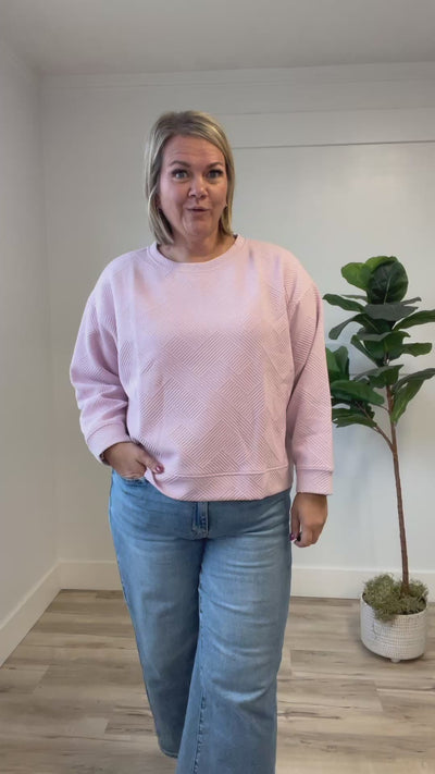 The Rachel Top in blush pink combines comfort and style effortlessly. Featuring a unique crisscrossed pattern and textured fabric, this long-sleeve pullover makes a subtle yet captivating statement. Perfect for layering or wearing on its own, it elevates your everyday wardrobe with a refined, feminine touch. Embrace a look that’s both cozy and chic with the Rachel Top.