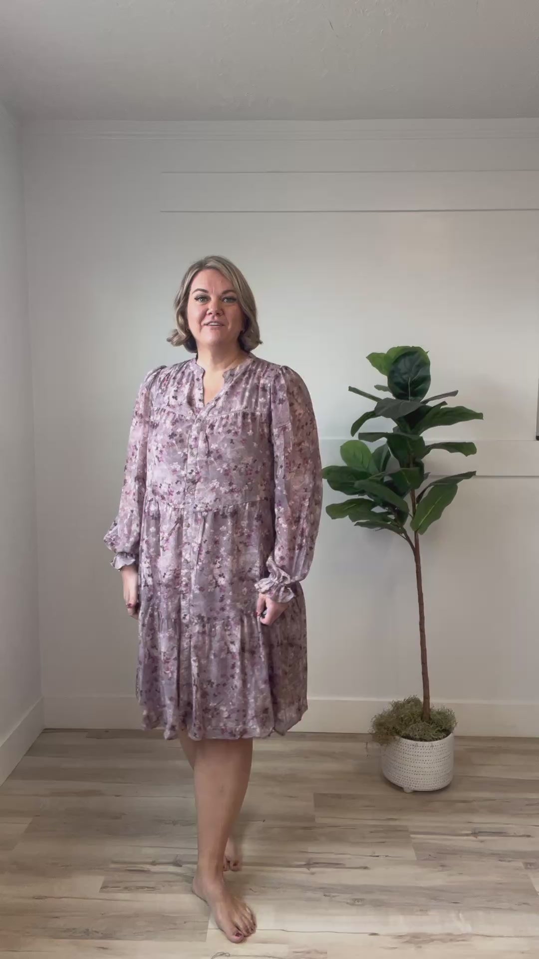 The Rebecca Midi blends delicate design with elegant comfort. Featuring a dusty lavender shade, this dress boasts a sheer overlay adorned with abstract floral prints for a soft, artistic touch. Long sleeves end in ruffled elastic cuffs, adding subtle movement and charm. Its fully button-up front and open notch neckline create a flattering silhouette, while a crochet lace trim at the yoke enhances its feminine appeal. Fully lined for comfort, this dress invites you to embrace grace and sophistication effortlessly.