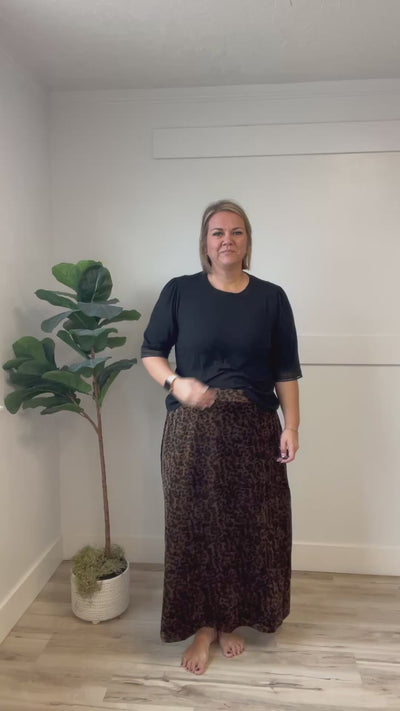 Slip into comfort with our Savanna Slip Skirt, featuring irresistibly soft chenille fabric that feels like a cozy hug. The bold leopard print brings wild style to your wardrobe, while the elastic waist ensures a perfect fit all day long. Whether you're dressing up or stepping out for casual activities, this skirt delivers effortless style with a touch of playful sass. Embrace your inner fashionista!