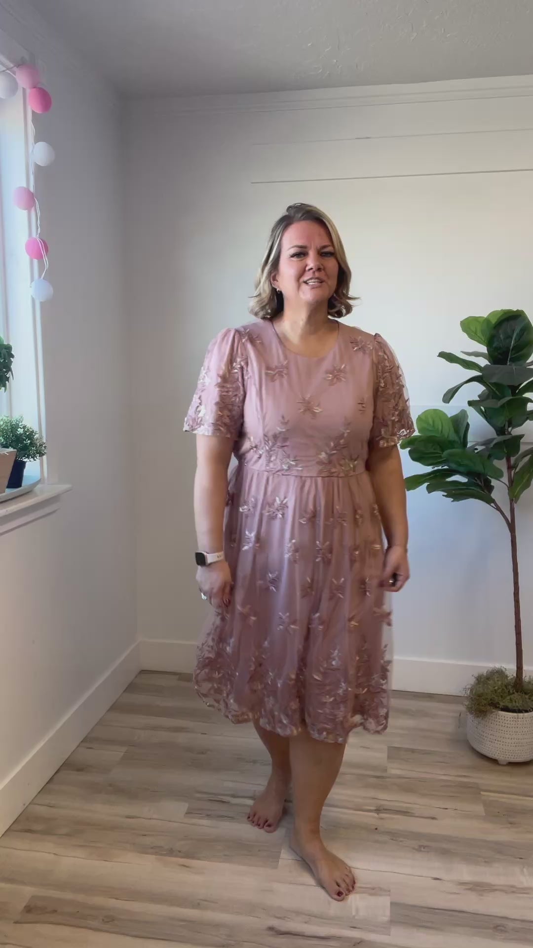 The Victoria Midi blends playful charm with elegant details. Its dark blush pink embroidered mesh with subtle sparkle adds a touch of magic, while flutter sleeves and princess seams create a flattering fit. The short sleeves and keyhole closure complete this fun, feminine look perfect for any occasion.