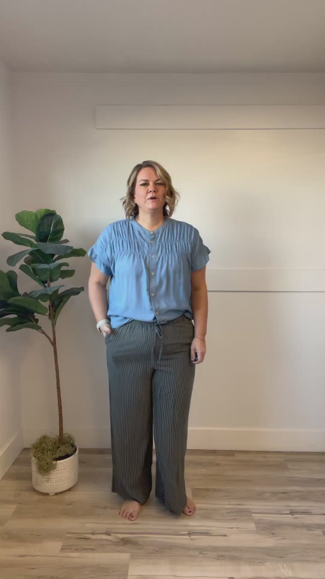 Meet the Zaida Pants—where effortless style meets unexpected flair. These flowy, loose-fit pants feature an elastic waist for all-day comfort and a striking dark olive base adorned with crisp white pinstripes. The real showstopper? A bold alternating-direction stripe pattern along the generous hem that adds movement and personality to every step. Versatile enough to dress up or down, these neutral-toned pants are your new go-to for creating interesting, on-trend looks that feel anything but ordinary.